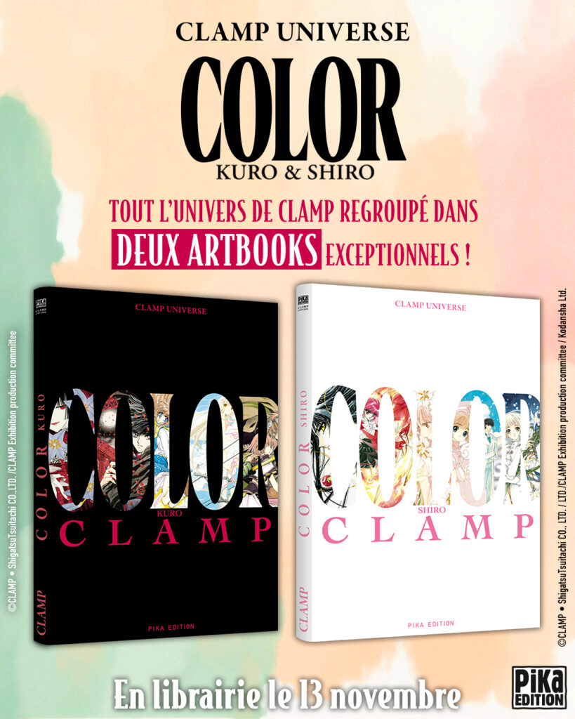 L’éditeur Pika a annoncé les sorties de deux superbes artbooks du collectif CLAMP avec Color CLAMP Shiro et le Color CLAMP Kuro. Leur sortie est prévue au 13 novembre prochain.