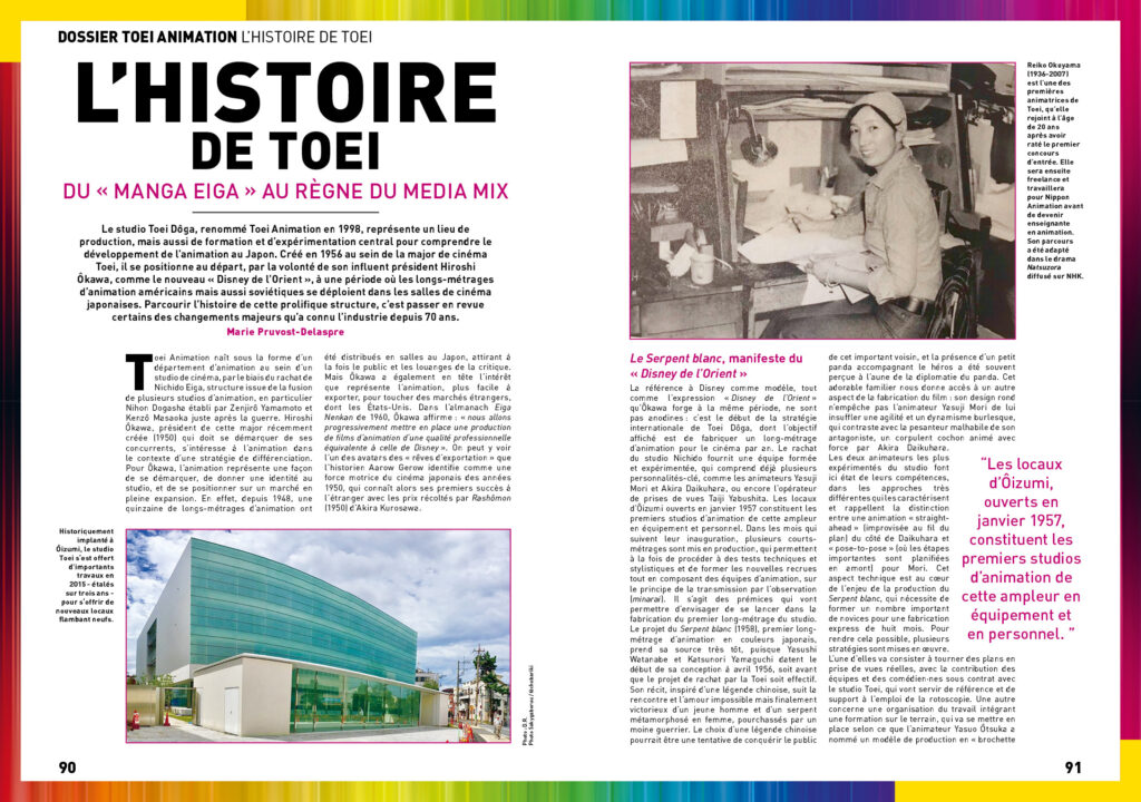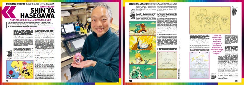Pour accompagner ce numéro, nous avons décidé de compléter nos précédentes recherches avec un dossier consacré à Toei. S’il est vrai que nous avons pu, à plusieurs reprises, évoquer le studio dans nos numéros précédents (concernant Dragon Ball, Hokuto no Ken ou encore Grendizer), nous allons un peu plus loin avec des articles et entretiens qui retracent une autre partie de son histoire, de sa vie avant l’animation jusqu’à son règne en matière d’anime fleuves. Pour cela, nous sommes partis à la rencontre de Shin’ya Hasegawa (animateur sur Sailor Moon) et Katsuyoshi Nakatsuru (animateur sur Dragon Ball), deux artistes aussi talentueux que généreux.