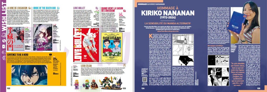 Enfin, le reste du numéro qui se boucle avec une postface de Cécile Corbel (à l’occasion de la sortie du film Les Légendaires) réunit les rubriques habituelle avec sa Wishlist, l’Hommage (à Kiriko Nananan) et bien sûr l’Aparté qui propose pas moins de trois entretiens avec :