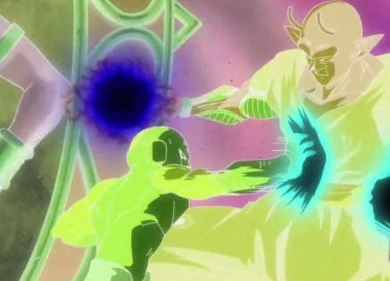 Arrive donc Piccolo. La question sur son niveau est réelle : que vaut l’un des plus charismatiques combattants dans cette saga Super ? Très vite, Piccolo concentre son énergie pour préparer un Makankôsappô. À une main, il va devoir esquiver les attaques – à distances ou rapprochées- de Frost tout en accumulant de l’énergie. Alors que Piccolo croit tenir son adversaire, Frost use d’une supercherie pour faire tanguer Piccolo à distance et lui assénant un coup décisif ! Voilà que le Namek est vaincu….Sauf que Jaco a décelé l’astuce et demande une expertise de la part de l’arbitre ! En fait, Frost a une petite aiguille près du poignet. En piquant son adversaire avec, il le rend faible et lui fait perdre connaissance. Jaco avait raison, ce qui fait dire à Bulma “Jaco, c’est la première fois de ta vie que tu es cool !”.
